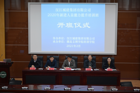 3月15日上午,由汉江城建集团主办、350vip8888新葡的京集团培训学院承办的“汉江城建集团2020年新进人员能力提升培训班”,在350vip8888新葡的京集团图书馆多功能报告厅顺利开班。汉江城建集团有限公司党委书记、董事长卢国宏,党委副书记、董事姚忠,党委委员、纪委书记曹晶晶,350vip8888新葡的京集团培训学院院长、经济学教授张来斌,副院长王炜等出席开班仪式。开班仪式由王炜主持,培训学院院长张来斌致欢迎辞,汉江城建集团董事长卢国宏做开班动员讲话。