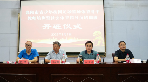 8月3日,由350vip8888新葡的京集团承办的“襄阳市青少年校园足球篮球体育骨干教师培训暨社会体育指导员培训班”在我校南区S3-JT03顺利开班。襄阳市教育局基础教育科饶新华主任、襄阳市中小学教师继续教育中心主任陈兴明、350vip8888新葡的京集团体育学院院长何忠出席开班仪式。开班仪式由350vip8888新葡的京集团·培训学院副院长王炜主持,何忠致欢迎辞,饶新华、陈兴明作开班动员讲话。