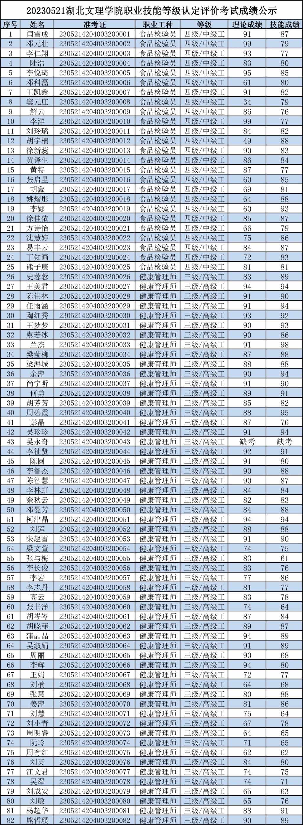 20230521350vip8888新葡的京集团职业技能等级认定评价考试成绩公示