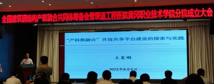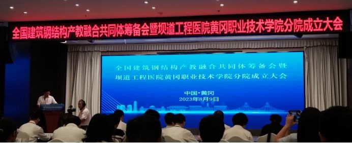 8月9日,全国建筑钢结构产教融合共同体成立大会暨坝道工程医院黄冈职业技术学院分院成立大会在黄冈举行,我校beat365平台官方网站行政负责人汪耀武、产教融合科科长刘长海应邀参会。