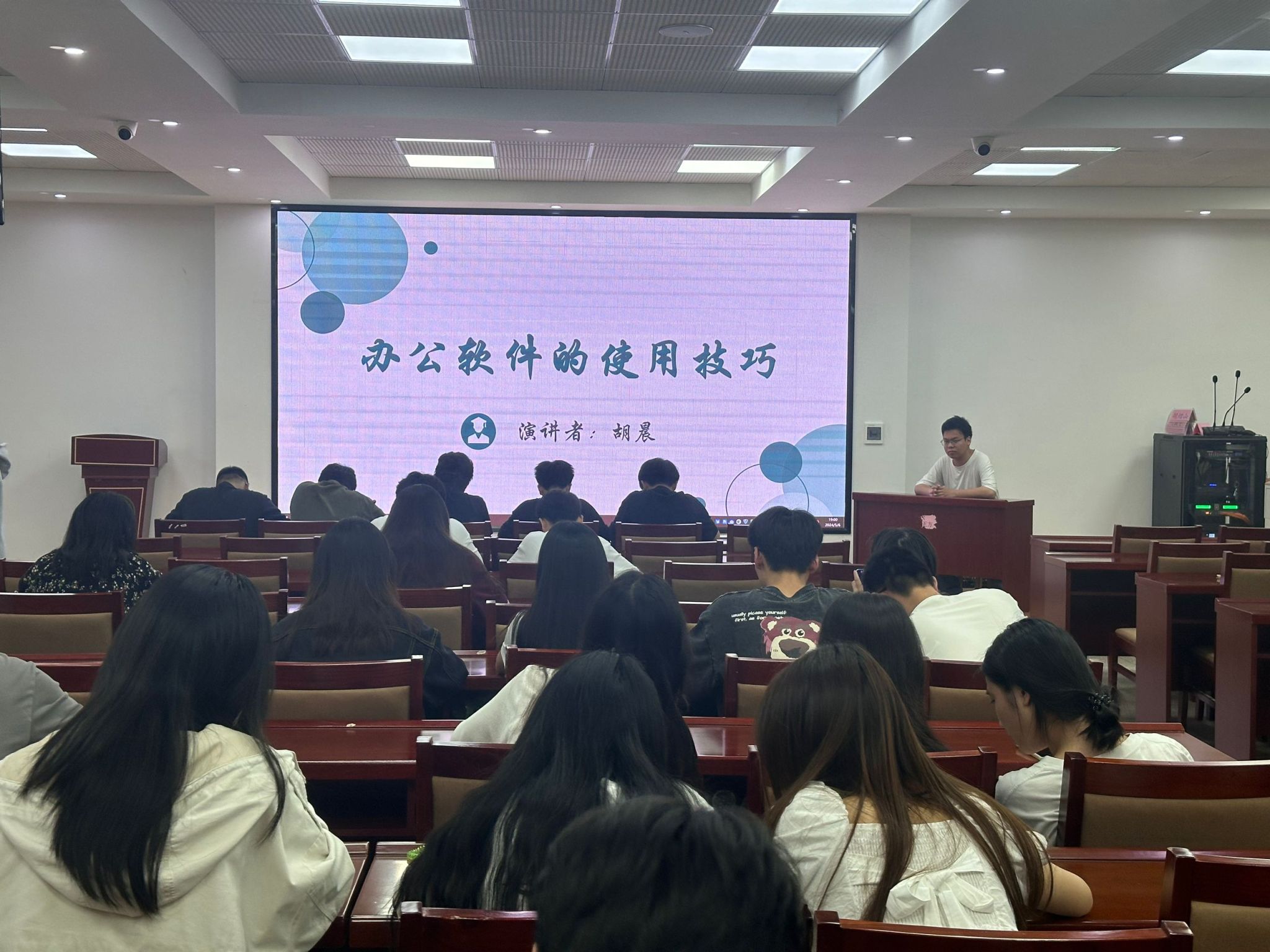 活动现场,胡晨围绕Word、Excel、PPT的使用,通过现场案例演示进行了全面而深入的讲解。同学们全神贯注地聆听他的讲解,并踊跃提问互动,通过此次培训,他们对办公软件的使用有了更深入的了解,将在今后的工作中更加熟练地运用这些技能。