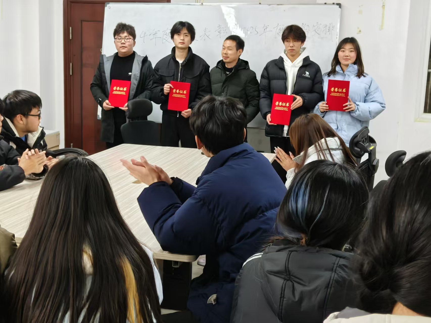 在表彰环节,经学院领导同意,工作室对过去一年在学业成绩、志愿服务、团队协作等方面表现突出的优秀学生进行了表彰。这些同学在各自的领域发光发热,用实际行动诠释了追光育人工作室 “自信自强,互助共进”的精神内涵: