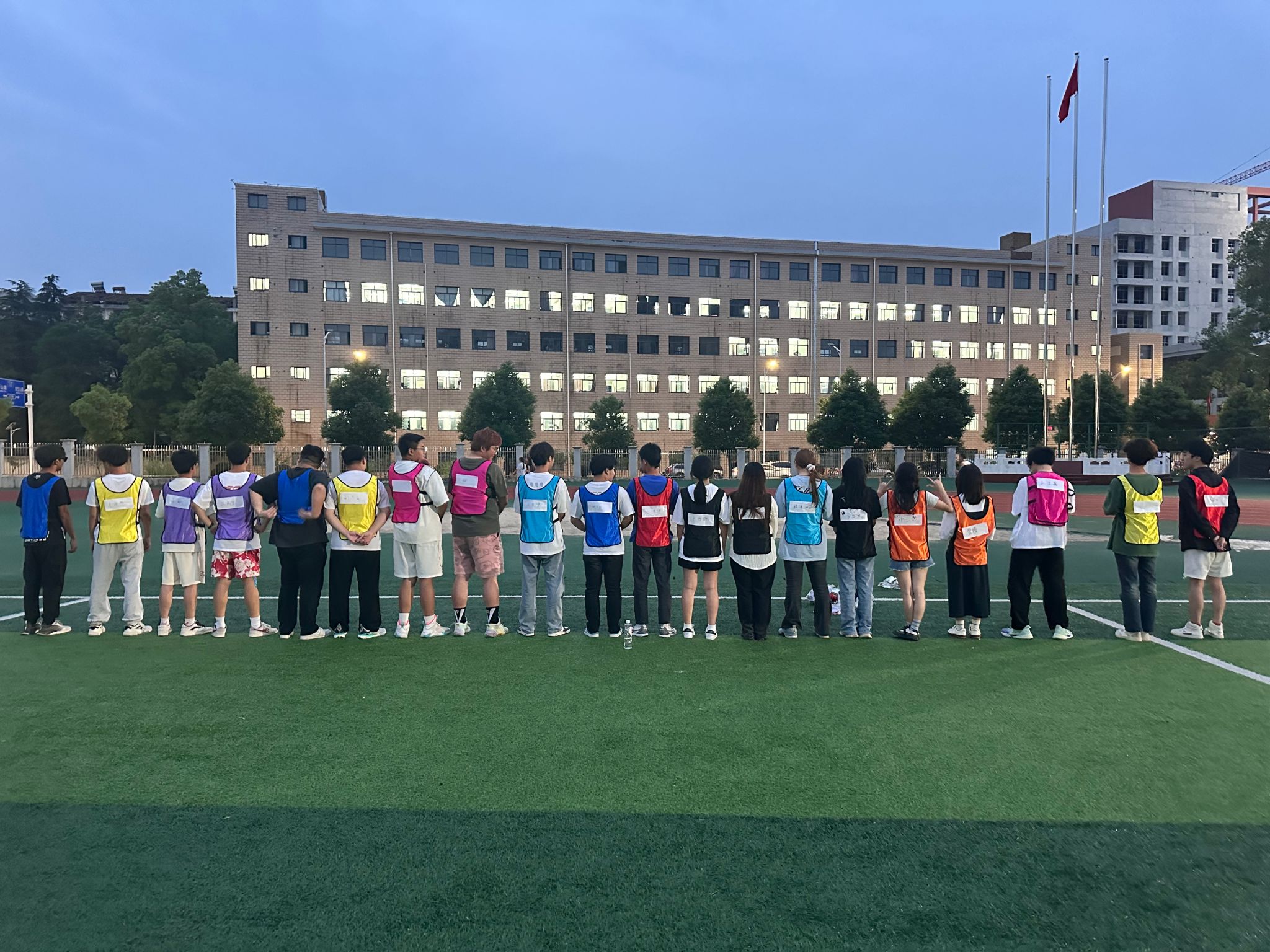 5月29日晚19:00,初夏的余晖里beat365平台官方网站的风雨球场上回荡着阵阵欢声笑语,2023级工程测量技术1班的同学们你追我赶,奋勇争先,开展非常刺激的户外团建活动——撕名牌。
