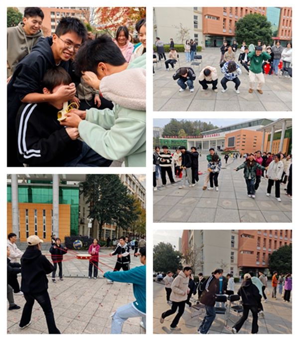 老师和学生被划分为四支队伍,先后进行了同心击鼓、抢凳子、蒙眼喂香蕉三个小游戏,大家在各项活动中积极表现、争取优胜,进行了别开生面的互动与合作,在全身心参与游戏的同时增进了默契与情谊。游戏之余,来自不同部门的成员还主动在团队内部进行了自我介绍和才艺展示,加深了对彼此的了解与认同,欢声笑语回荡在秋日的午后。