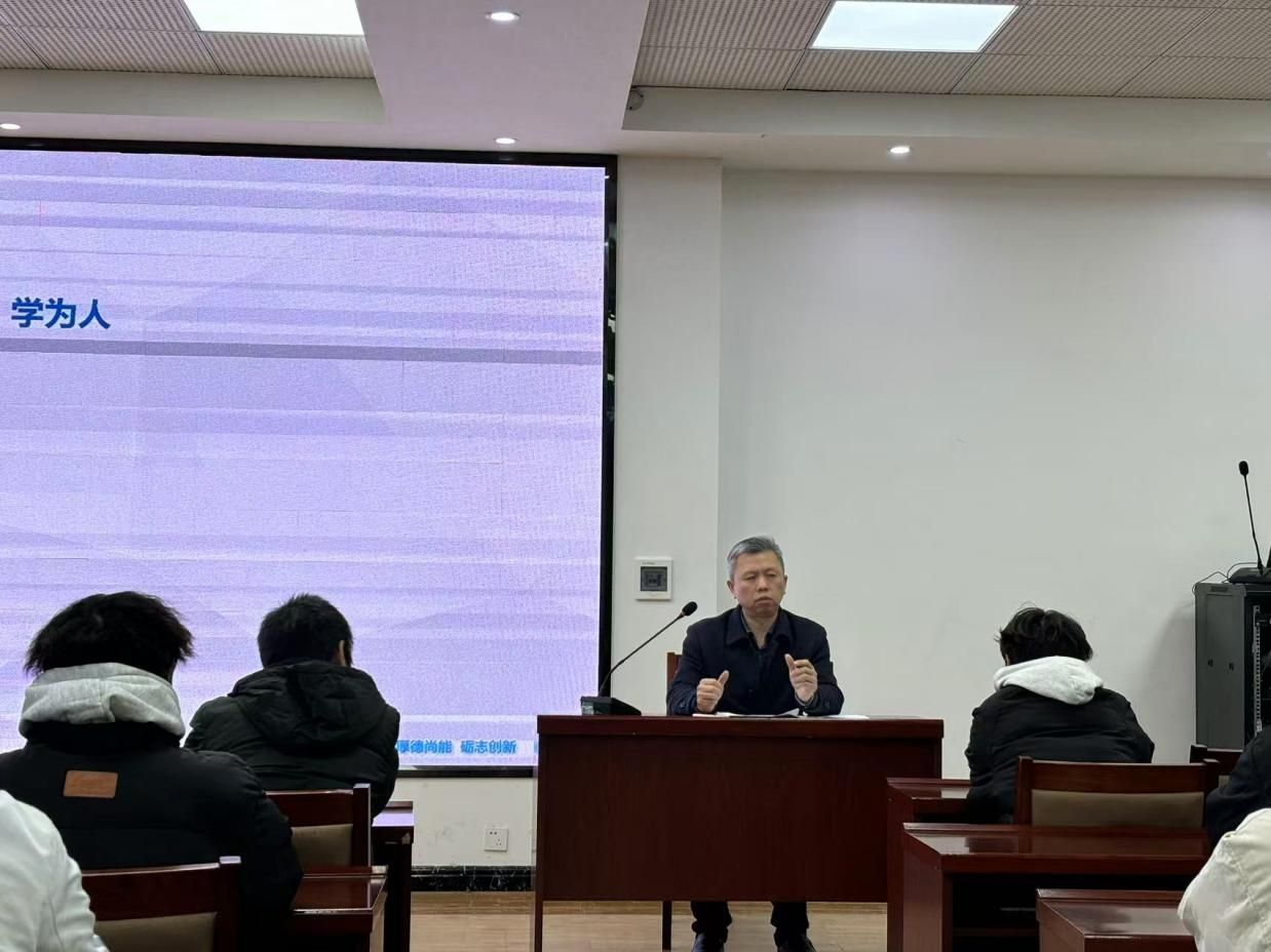 在23工程造价1班杨可同学的主持下,周景润老师向同学们介绍了周景润追光育人工作室创建的初心和工作内容,并以自己亲身经历和“把自己活成一道光,比寻找光明更重要”的人生感悟激励同学们自信自强,不断自我重塑,向阳而生、追光而行,以实际行动报答父母、感恩母校、回馈社会,努力成为无愧于自己、无愧于家庭、无愧于学校、无愧于社会的新时代有理想、有担当的时代好青年。