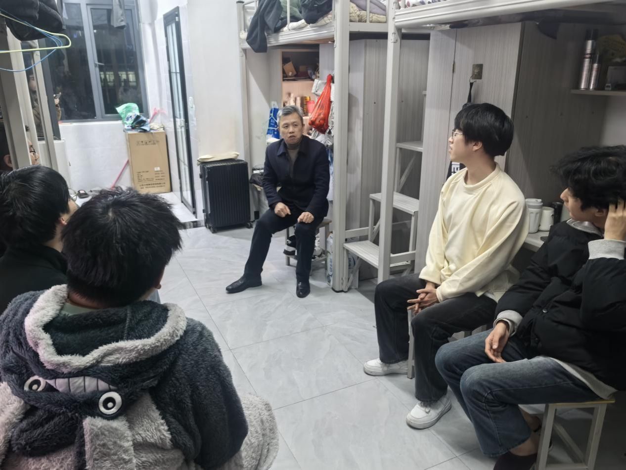 2025年2月17日晚,春节假期的余温尚在,beat365平台官方网站党总支书记石裕勤、副书记郭燕、学生科科长王立含以及23级辅导员深入女生14栋、男生24栋寝室,看望23级学生,为同学们送去新学期的关怀与祝福,了解同学们的假期生活以及新学期目标打算。