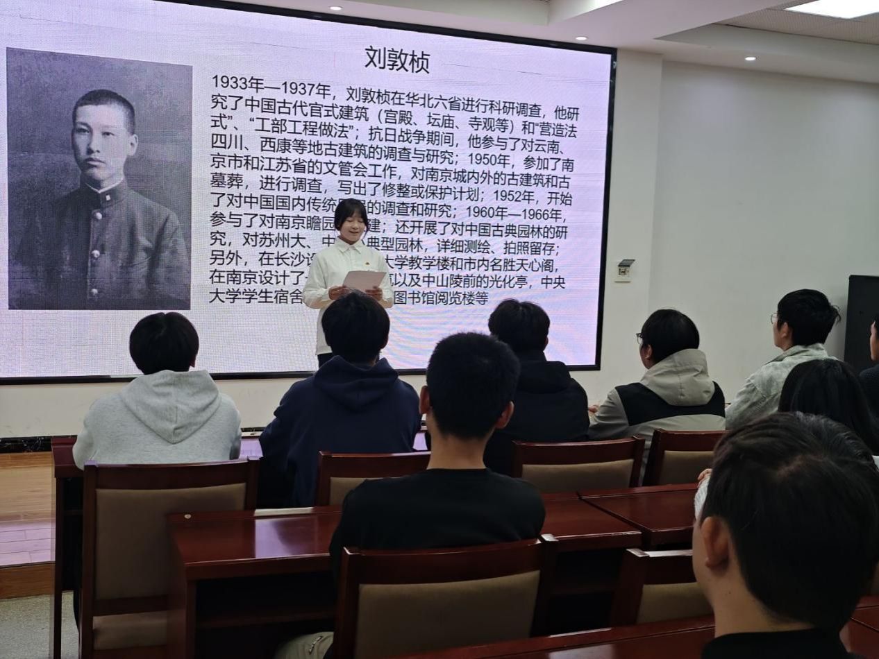 beat365平台官方网站团支书代表以“薪火红途 青春知行”为主题展开专题讲座,通过珍贵史料和鲜活案例,生动讲述了共青团在不同历史时期的奋斗故事,并着重讲述建筑先贤刘敦桢的事迹与学术贡献。
